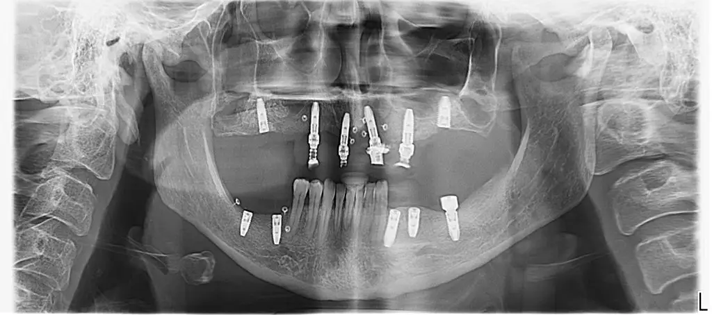 Am extras dintii irecuperabili, am practicat lifting de sinus maxilar (in unele situatii nu poate fi evitat) si am inserat 6 implanturi.