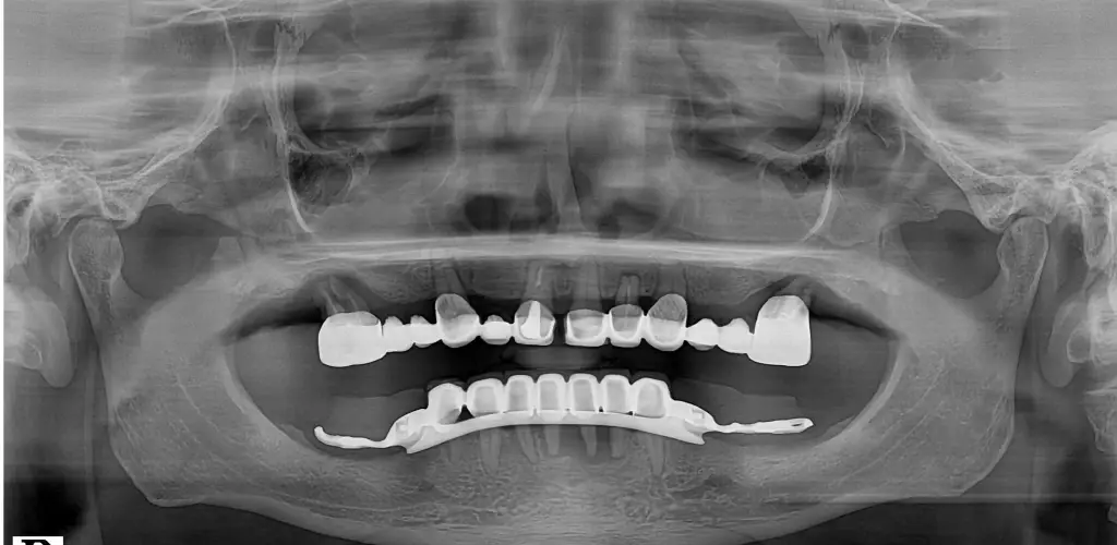 Pacientul a venit la noi cu boala parodontala avansata, care a dus la pierderea dintilor si afectarea structurii osoase..